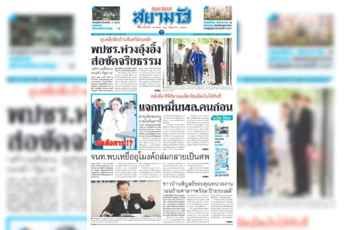 หน้า 1 หนังสือพิมพ์สยามรัฐรายวัน ฉบับวันศุกร์ที่ 30 สิงหาคม 2567
