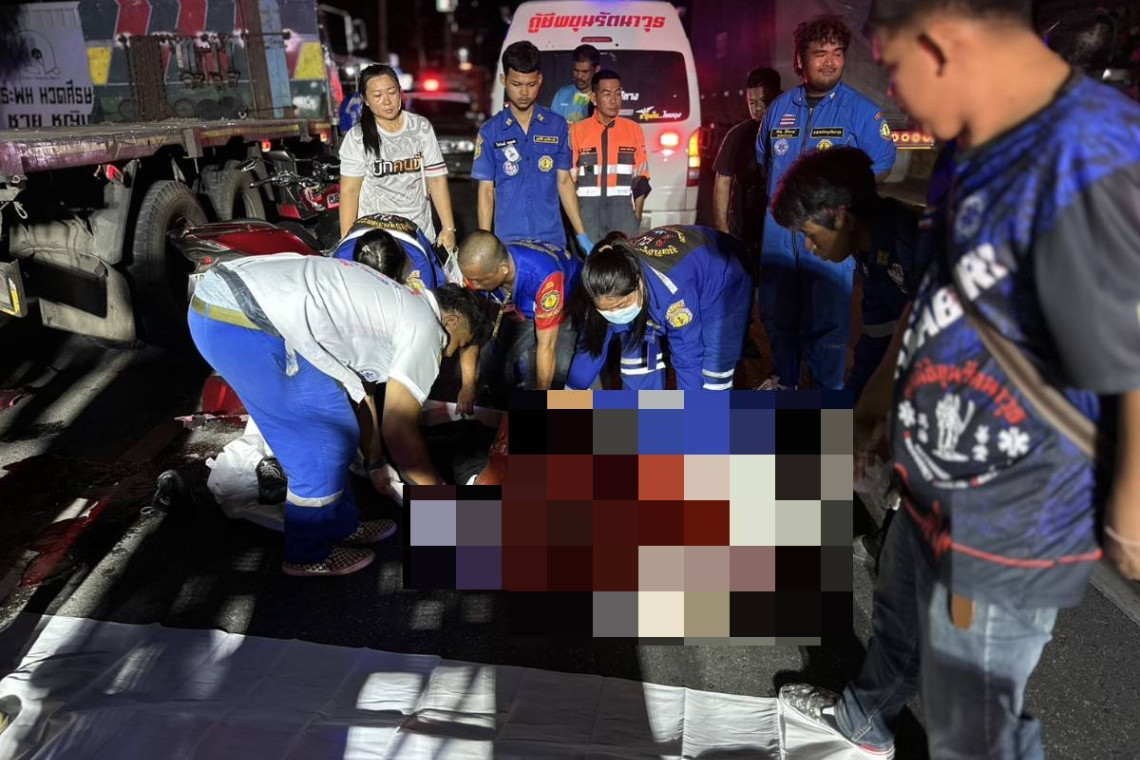 ตูมเดียว ! ดับอนาถคาที่สาวทอมท่าล้อ กาญจน์ ซิ่งรถ จยย.PCX160 ซีซี.ชนท้ายรถเทรลเลอร์ 10 ล้อ คาดเบอร์ไม่อยู่