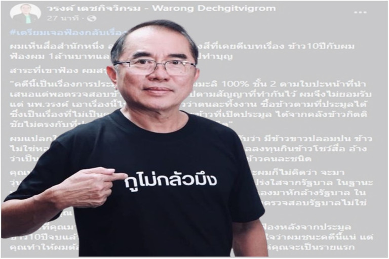 ผมเห็นสื่อสำนักหนึ่ง ลงข่าวว่าเจ้าของโรงสีที่เคยดีเบทเรื่อง ข้าว10ปีกับผม ฟ้องผม 1ล้านบาทและยังบอกว่าจะเอาไปทำบุญ