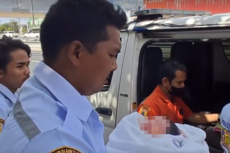 และจากการสอบถาม นาย เจริญ พุทธายะ อาสาสมัคร อปพร.เขตบางขุนเทียน รหัส 369 กล่าวว่า ตนได้รับแจ้งในช่วงเวลา 9.00 น. ว่ามีหญิงใกล้คลอด บ้านอยู่แถวเลียบด่วนพระประแดง โรงปูน ตนจึงรับจัดอุปกรณ์ปฐมพยาบาลเบื่องต้นรีบไปตรวจสอบทันที พอไปถึงก็พบผู้ป่วยคนดังกล่าว อายุ ประมาณ 30 ปี มีอาการปวดท้อง แล้วมีน้ำไหลออกมาจากบริเวณช่องคลอดแต่ก็ไม่รู้ว่าน้ำอะไร ก็เลยรีบนำตัวส่งโรงพยาบาลสมุทรสาคร แต่พอมาถึงตรงบริเวณนี้ก็ต้องหยุดรถทันทีเพราะว่าเด็กคบอดออกมาแล้ว ตนก็เลยรีบลงมาช่วยปฐมพยาบาลพร้อมประสานทีมเจ้าหน้าที่ในระบบเอราวัณ เด็กที่คลอดออกมาเป็นเพศ หญิง สมบูรณ์แข็งแรงดี ตนถามจากแม่ของเด็กแล้วเขาบอกว่ากำหนดคลอด เป็นวันที่ 17 กันยายน 2567 แต่ไม่รู้ยังไงถึงได้คลอดออกมาก่อน ส่วนลูกคนนี้เป็นท้องที่ 4 แล้ว ก็เท่ากับว่าถ้านับตามกำหนดคลอดจริงๆ เด็กคนนี้ก็มีอายุครรณ์แค่ 8 เดือน เอง ส่วนเวลาที่คลอดออกมาภายในรถเป็นเวลา 9.30 น.