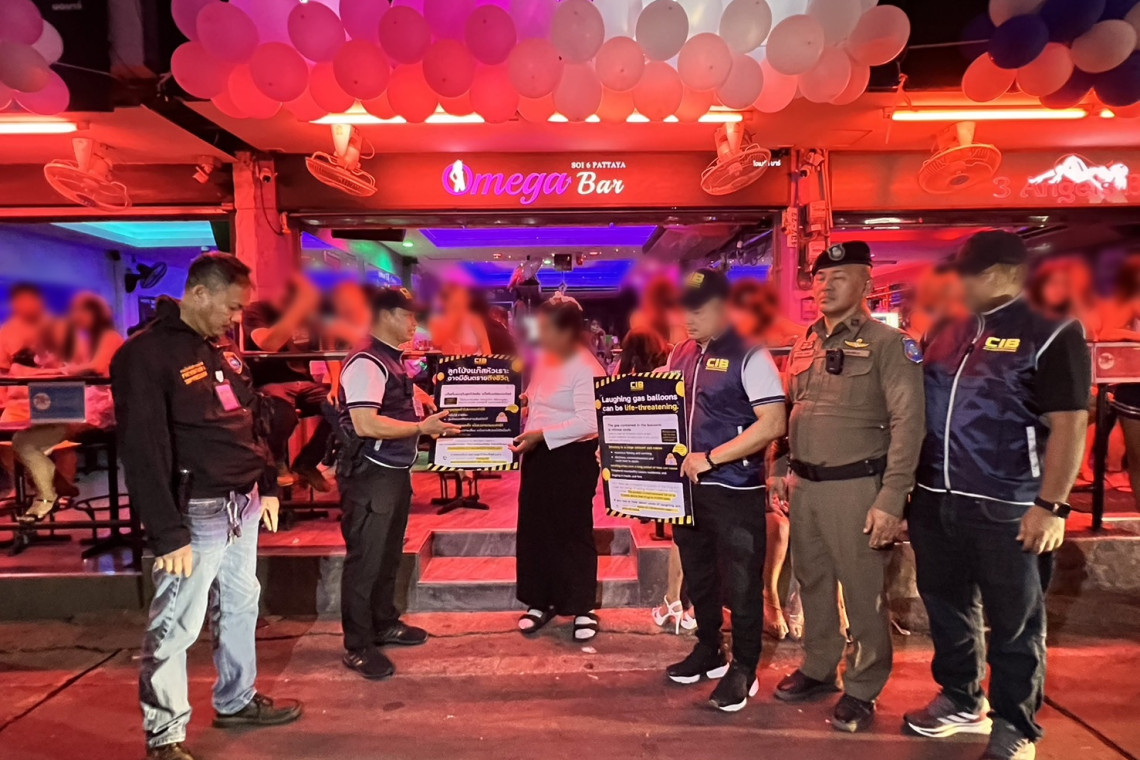 ปคม.สนธิกำลัง ตร.พัทยา ตร.ท่องเที่ยว ตรวจสถานบริการ ห้ามจำหน่ายลูกโป่งหัวเราะ