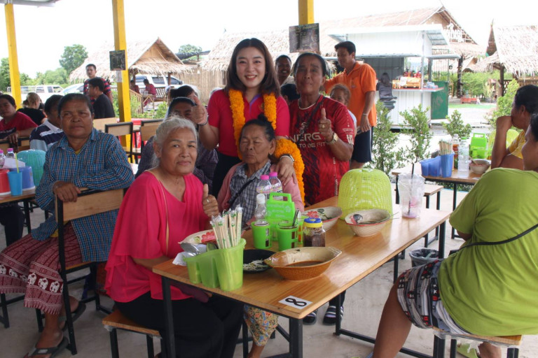 จากนั้นชาวบ้านที่มาแสดงยินดีได้ร่วมกันทานก๋วยเตี๋ยวเรือฟรีอร่อยไม่อั้น โดยมีกำนันน้องหนู และสองผู้ใหญ่บ้าน ช่วยกันทำก๋วยเตี๋ยว ลวกเส้น เติมเครื่อง พร้อมเสิร์ฟให้ผู้ที่มาทานเลือกอิ่มอร่อย ผู้คนหลั่งไหลมาตลอดทั้งวัน มีซุ้มน้ำให้สั่งทุกแก้วเต็มที่ทุกเมนูอีกด้วย