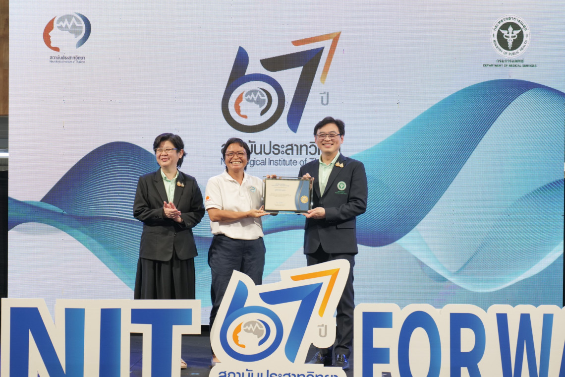 ในงานวันสถาปนาครบรอบ 67 ปี สถาบันประสาทวิทยา "NIT FORWARD" ที่ผ่านมา น.ส. วาริฉัตร ดวงจินดา นักบริหารแผนงานชำนาญการ ตัวแทนสำนักสร้างเสริมระบบสื่อและสุขภาวะทางปัญญา (สำนัก 11)สำนักงานกองทุนสนับสนุนการสร้างเสริมสุขภาพ (สสส.) และ คุณพรทิพย์ ฝนหว่านไฟ กรรมการเลขานุการมูลนิธิเครือข่ายพุทธิกา ผู้จัดการโครงการฉลาดทำบุญเติมสุขได้ทุกวัน มูลนิธิเครือข่ายพุทธิกา เข้ารับเกียรติบัตรจากผู้ช่วยศาสตราจารย์พิเศษ นายแพทย์ธนินทร์ เวชชาภินันท์ รองอธิบดีกรมการแพทย์ และ ว่าที่ ร.ต.ท.หญิง เเพทย์หญิงนภา ศิริวิวัฒนากุล ผู้อำนวยการสถาบันประสาทวิทยา จากการทำงานร่วมกับสถาบันประสาทวิทยาในกิจกรรมอาสาอำนวยความสะดวกในโรงพยาบาล ซึ่งเป็นส่วนหนึ่งของโครงการฉลาดทำบุญเติมสุขได้ทุกวัน ภายใต้การสนับสนุนของสำนักงานสร้างเสริมระบบสื่อและสุขภาวะทางปัญญา สสส.