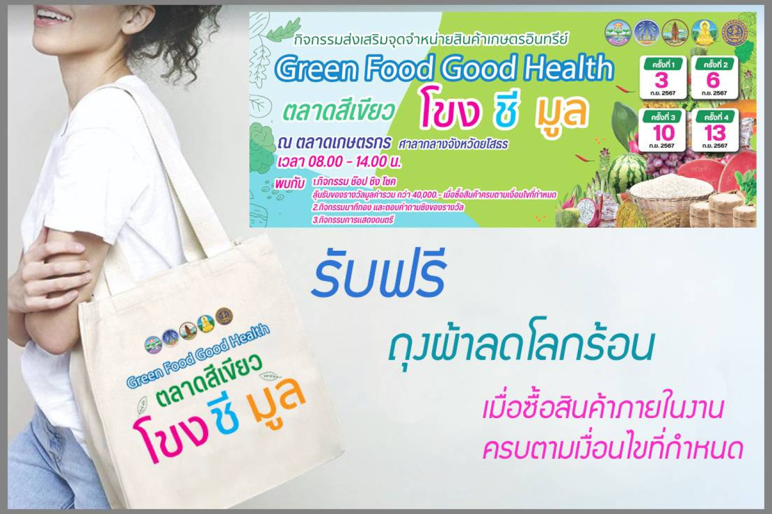 ซึ่งกิจกรรมภายในงานประกอบด้ว 1.กิจกรรม สอยดาว“ช๊อปชิงโชค” ลุ้นรับของรางวัล เมื่อซื้อสินค้าในตลาดสีเขียว โขงชีมูล ครบตามเงื่อนไขที่กำหนด 2.กิจกรรมสร้างการมีส่วนร่วม นาทีทองตอบคำถามชิงของรางวัล 3.กิจกรรมการแสดงดนตรีและศิลปวัฒนธรรมจึงขอเชิญชวนพี่น้องชาวยโสธรและจังหวัดใกล้เคียงมาเลือกชมเลือกซื้อสินค้าปลอดภัย สินค้าอินทรีย์และเข้าร่วมกิจกรรมที่สนามหน้าศาลากลางจังหวัดยโสธร