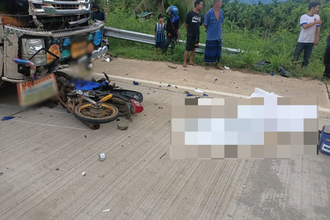 ตูมเดียว! หนุ่มเมียนมา ควบรถ จยย.หลุดโค้งชนรถ 10 ล้อ ดับอนาถคาที่