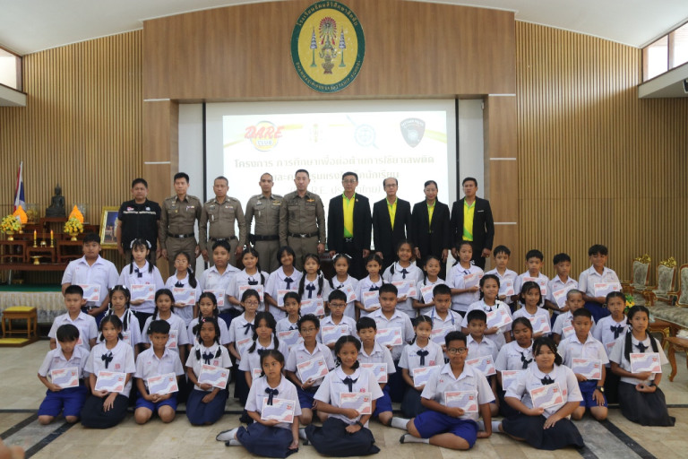 นักเรียนธัมมสิริศึกษาสัตหีบ รับประกาศนียบัตรโครงการศึกษาเพื่อต่อต้านการใช้ยาเสพติดและความรุนแรงในเด็กนักเรียน(D.A.R.E.) ประเทศไทย