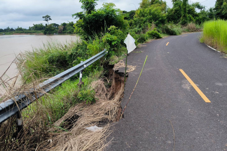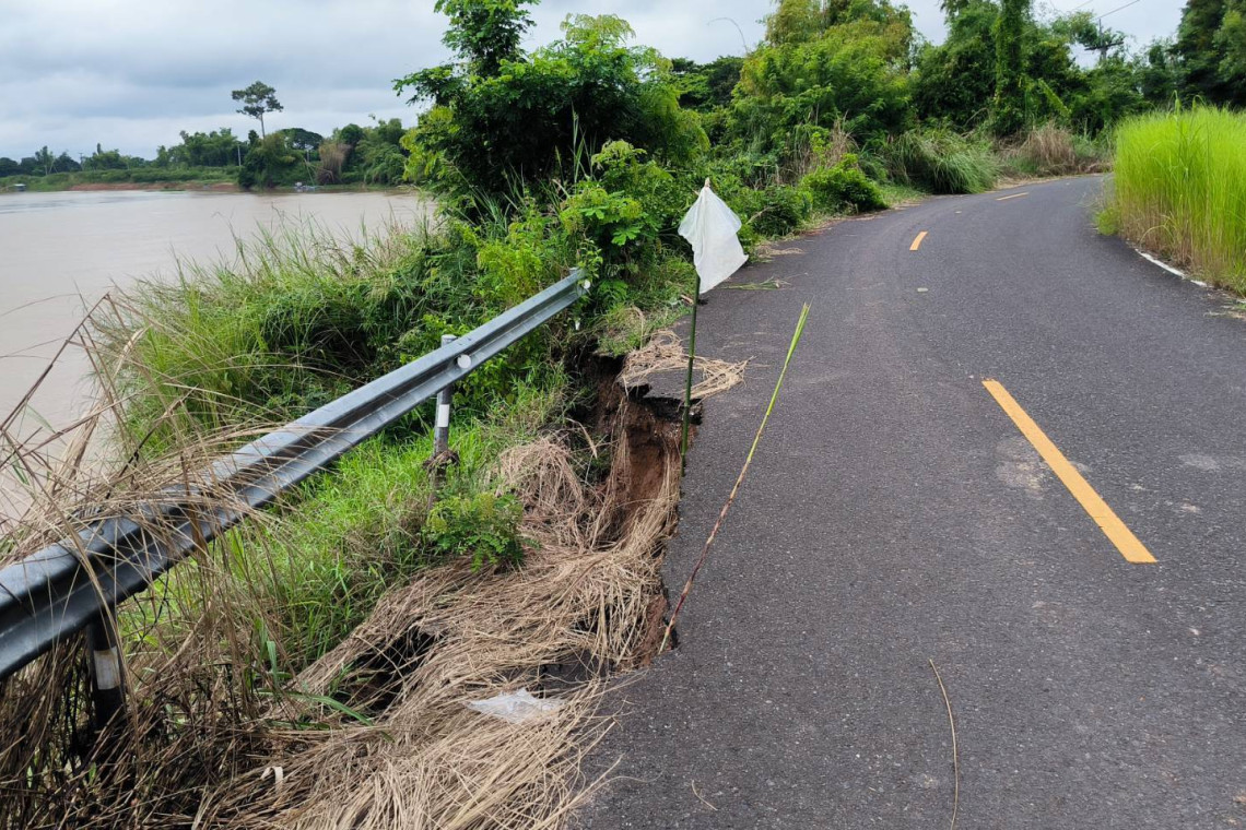ถนนเลียบพนังแม่น้ำชีทรุดหลังเขื่อนยโสธร-พนมไพรเร่งระบายน้ำเพื่อรองรับน้ำเหนือ