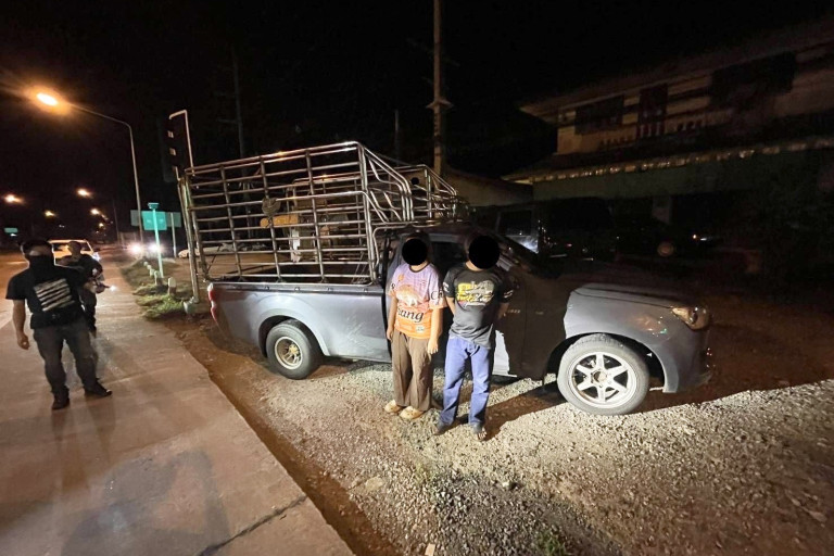 จนกระทั่งเวลาประมาณ 00.05 น. ได้มีรถยนต์ทั้ง 2 คัน วิ่งผ่านบนถนนเจ้าหน้าที่ตำรวจจึงได้เฝ้าสังเกตุติดตามพฤติกรรมโดยสังเกตุเห็นรถยนต์กระบะ ยี่ห้อ isuzu สีขาว มีการบรรทุกสิ่งของหลังรถจึงได้ทำการสกัดขอทำการตรวจค้น
