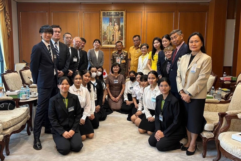 โดยมีคุณวาชิซึ มิโอะ รองผู้ว่าราชการจังหวัดฟุกูอิ คุณคัตสึฮิโระ มิโนวะ หัวหน้าสำนักส่งเสริมสุขภาพและสังคม ผู้อำนวยการโครงการฝึกอบรมภาษาญี่ปุ่นเพื่อการพยาบาลจังหวัดฟุกูอิ และนายฮิกาชิกาโดะ มิซาโอะ ประธานสมาคมผู้สนับสนุนมูลนิธิดวงประทีปแห่งจังหวัดฟุคุอิ(อดีตสมาชิกสภาผู้แทนราษฎรจังหวัดฟุคุอิ)คุณลดาพันธ์ ปรีชาทอง หัวหน้าฝ่ายความสัมพันธ์ระหว่างประเทศ และหัวหน้าฝ่ายดูแลผู้สูงอายุโครงการผู้สูงอายุฟุกุอิ พร้อมด้วยคณะนักเรียนนักศึกษาจากจังหวัดกาญจนบุรี และเจ้าหน้าที่ที่เกี่ยวข้องทั้งสองฝ่ายเข้าเยี่ยมคารวะในครั้งนี้ โดยมีอาจารย์ไพรัตน์ กรบงกชมาศ ที่ปรึกษาองค์มนตรี พล.อ.ไพบูลย์ คุ้มฉายา เป็นผู้ประสานโครงการฯ ในการเข้าพบท่านองคมนตรี ซึ่งบรรยากาศการสนทนาพร้อมรับคำแนะนำที่เป็นประโยชน์อย่างมาก สร้างความประทับใจแก่คณะของจังหวัดฟุกูอิ ประเทศญี่ปุ่น เป็นอย่างยิ่ง