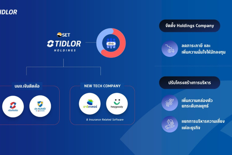 ซึ่งสถานะของการปรับโครงสร้างกลุ่มบริษัทเป็น Holding Company ขณะนี้ บริษัทฯ อยู่ระหว่างการยื่นขออนุญาตจากหน่วยงานที่เกี่ยวข้องซึ่งเป็นไปตามกำหนดการที่วางไว้ โดยคาดว่า ติดล้อ โฮลดิ้งส์ จะทำคำเสนอซื้อหลักทรัพย์ทั้งหมดของบริษัทฯ (Tender Offer) จากผู้ถือหุ้นเดิมโดยวิธีการแลกหุ้นที่อัตรา 1:1 ในช่วงไตรมาส 4 ของปีนี้ สำหรับผู้ถือหุ้น นักลงทุน และผู้ที่สนใจสามารถติดตามข้อมูลข่าวสารของบริษัทฯ ได้ที่เว็บไซต์ www.tidlorinvestor.com