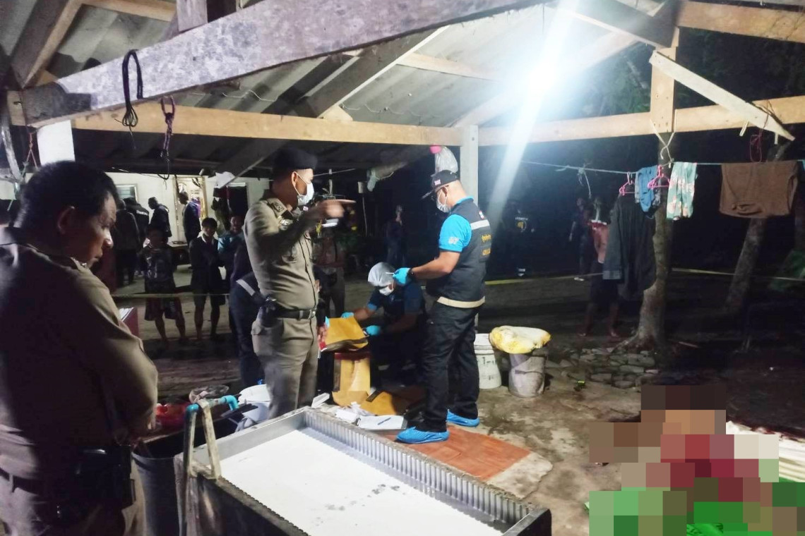 เมื่อเวลา 00.30 น. วันที่ 6 กันยายน 2567 พ.ต.ท.วิชาญ กลิ่นสุข สารวัตร สอบสวน สถานีตำรวจภูธรอ่าวน้อย อำเภอเมือง ประจวบคีรีขันธ์ จังหวัดประจวบคีรีขันธ์ ได้รับแจ้งเหตุฆ่ากันตาย ที่บริเวณโรงรีดยางพารา สวนยางพารา บ้านเนินแก้ว หมู่ 5 บ้านหนองเสือ ตำบลอ่าวน้อย อำเภอเมือง ประจวบคีรีขันธ์ จังหวัดประจวบคีรีขันธ์ จึงรายงานให้ผู้บังคับบัญชาทราบ จากนั้นรีบรุดเดินไปยังจุดเกิดเหตุ พร้อมด้วย พ.ต.อ.สถิตย์ คงเนียม ผกก.สภ.อ่าวน้อย พ.ต.ท.ชัยณรงค์ ดีศิริ รอง ผกก.สืบสวนจังหวัดฯ พ.ต.ท.สำราญ ขาวแก้ว รอง ผกก.สืบสวน สภ.อ่าวน้อย พ.ต.ท.ชุมพล บางจันทึก รอง ผกก.ป.สภ.อ่าวน้อย แพทย์ รพ.ประจวบคีรีขันธ์ พิสูจน์หลักฐานจังหวัดประจวบคีรีขันธ์ และมูลนิธิสว่างประจวบธรรมสถาน ที่เกิดเหตุพบศพ นาย Aung Lwin (อารวย) อายุ 39 ปี สัญชาติเมียนมา สภาพศพไม่สวมเสื้อ ใส่กางเกงขาสามส่วนสีแดง นอนหงายจมกองเลือดอยู่ข้างกองยางพาราที่ รีดแผ่นแล้ว ตรวจตามร่างกายพบที่บริเวณลำคอถูกปาดด้วยของมีคมซึ่งคาดว่าเป็นมีดกรีดยางเป็นบาดแผลฉกรรจ์ และบริเวณหลังศีรษะยังพบบาดแผลอีกหลายแห่ง ที่บริเวณบนหน้าท้องผู้ตายยังมีค้อนวางทับแผ่นกระดาษเปื้อนเลือดเขียนข้อความเป็นภาษาเมียนมา ให้ล่ามแปลความว่า “ถ้าเขาผิดหากจะจับเขาให้โทรหาเขาเป็นคนเอารถเครื่องไป ” ทางเจ้าหน้าที่ตำรวจจึงเก็บไว้เป็นหลักฐาน ก่อนนำศพส่ง รพ.ประจวบคีรีขันธ์ ให้แพทย์ตรวจชันสูตรอีกครั้ง