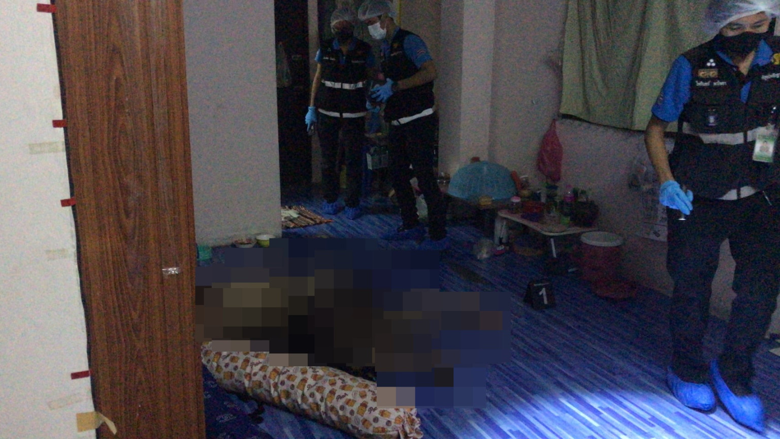 ที่เกิดเหตุอยู่บริเวณชั้น 3 เจ้าหน้าที่ได้กั้นเชือกไว้ เพื่อรอการตรวจสอบ พบศพนางซูตาง ดางงุย (soe thangdar nge) อายุ39 ปี ชาวเมียนมา ถูกฆ่าตายภายในห้อง ใกล้กันพบค้อนมีร่องรอยคราบเลือดติดอยู่ คาดว่าเป็นอาวุธที่คนร้ายใช้ก่อเหตุ เสียชีวิตมาแล้วประมาณ 3-4 วัน