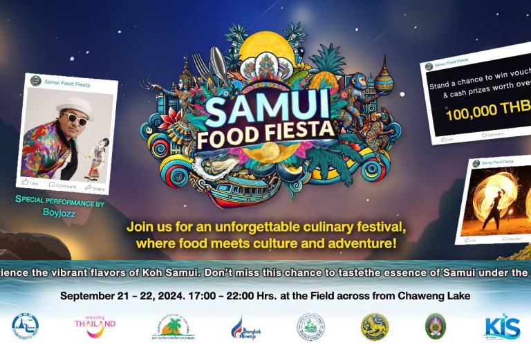 เมื่อวันที่ 8 กันยายน นายรัชชพร พูลสวัสดิ์ นายกสมาคมส่งเสริมการท่องเที่ยวเกาะสมุย จ.สุราษฎร์ธานี เปิดเผยว่า สมาคมฯ ร่วมกับ อำเภอเกาะสมุย ,การท่องเที่ยวแห่งประเทศไทย(ททท.) สำนักงานเกาะสมุย, เทศบาลนครเกาะสมุยและหน่วยงานต่างๆ จะจัดงาน “ Samui Food Fiesta ” ระหว่างวันที่ 21-22 กันยายนนี้ ตั้งแต่เวลา 17.00-22.00 น.ณ ลานตรงข้ามพรุเฉวง ต.บ่อผุด อ.เกาะสมุย เป็นการรวมตัวด้านอาหารท้องๆถิ่นเกาะสมุยครั้งใหญ่ เพื่อเผยแพร่วัฒนธรรมทางอาหารของดีเกาะสมุยและส่งเสริมด้านการท่องเที่ยว ซึ่งอาหารพื้นบ้านเกาะสมุยเป็นที่นิยมของนักท่องเที่ยวที่เดินทางมาเยือนเป็นอย่างมาก