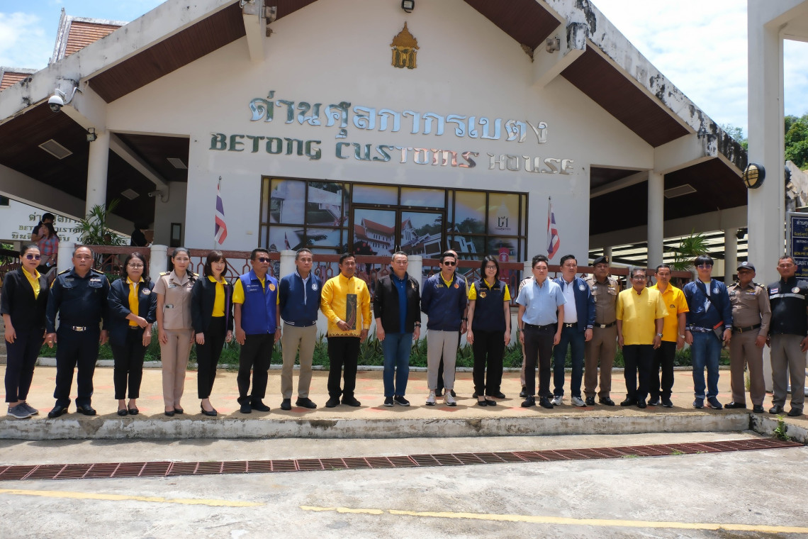 วันที่ 9 กันยายน 2567 ที่บริเวณด่านศุลกากรเบตง อำเภอเบตง จังหวัดยะลา นายกรวีร์ ปริศนานันทกุล ประธานคณะกรรมาธิการการปกครอง พร้อมคณะกรรมาธิการกรมการปกครอง สภาผู้แทนราษฎร ลงพื้นที่ศึกษาดูงาน เรื่อง “บทบาทและภารกิจของอำเภอเบตงในการส่งเสริมและพัฒนาเมืองเบตงด้านการท่องเที่ยว” โดยมีนายอมร ชุมช่วย นายอำเภอเบตง นางสาวประอรรัตน์ รัตนพรสมปอง นายด่านศุลกากรเบตง นายจรัญ จันทร์ทิพย์ รองนายกเทศมนตรีเมืองเบตง พ.ต.อ.จิรวัฒน์ ดูดิง ผกก. สภ.เบตง และหัวหน้าส่วนราชการให้การต้อนรับ