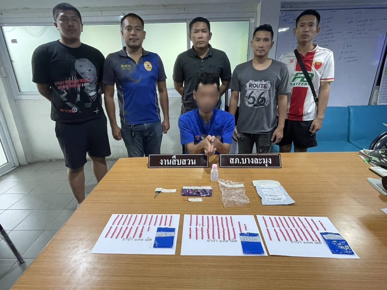 เมื่อคืน วันที่ 9 ก.ย.67 พ.ต.อ.นาวิน สินธุรันต์ ผกก.สภ.บางละมุง ได้สั่งการ พ.ต.ท.กรณ์พงษ์ สุขวิสิฏฐ์ รอง ผกก.สส. และ พ.ต.ต.วุฒิพงษ์ กาสา สว.สส. นำกำลังชุดสืบสวนกวาดล้างจับกุมยาเสพติด ในพื้นที่รับผิดชอบ โดยขยายผลจากผู้เสพ จนได้เบาะแสว่า นายจีรวัฒน์ หรือ “เต้ง คอลาย” อายุ 26 ปี รูปร่างผอม ผมสั้น มีรอยสักบริเวณลำคอและเรือนร่าง เป็นเอเย่นต์จำหน่ายยาเสพติด ให้กลุ่มวัยรุ่นในพื้นที่บ้านบึง และใกล้เคียง
