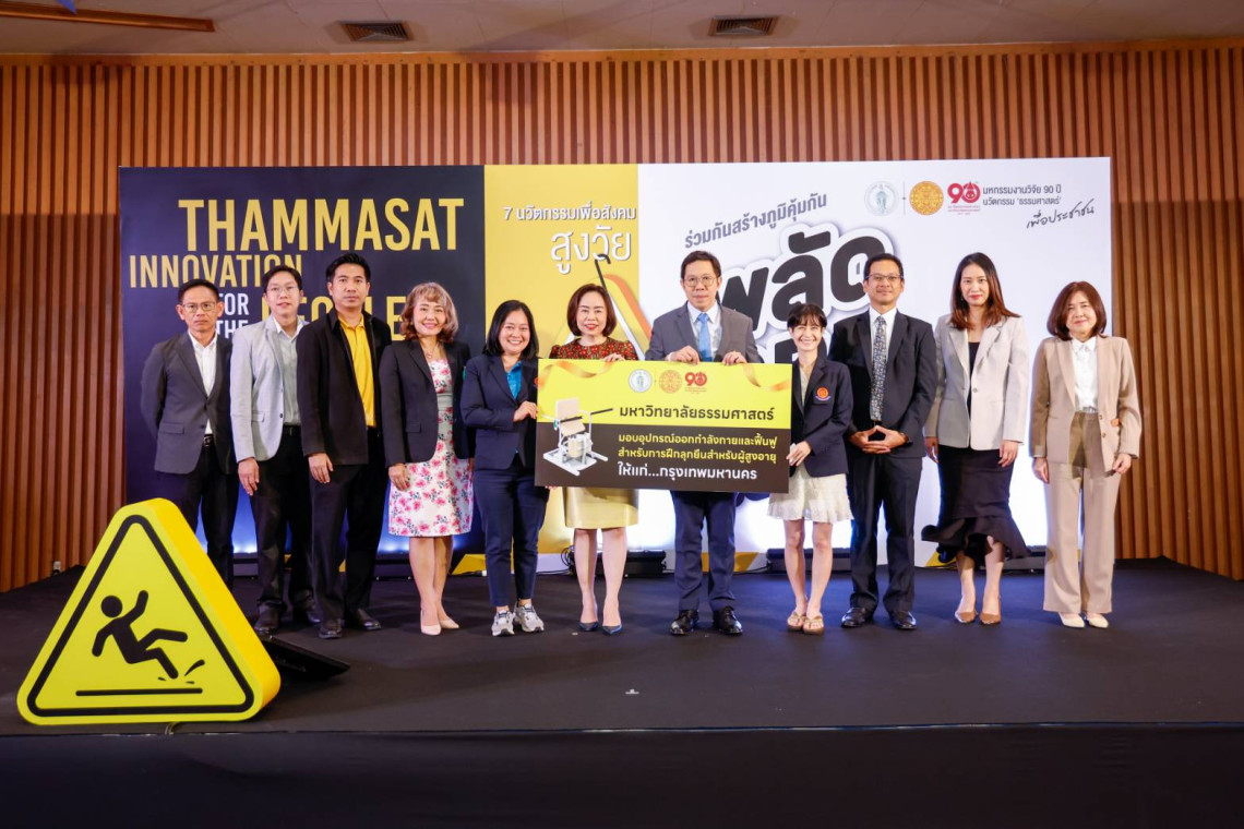 “มธ.” เปิดตัว “7 นวัตกรรมเพื่อสังคมสูงวัย” ตอบโจทย์ปัญหาประเทศ เตรียมพร้อมรับมือ “Super Aged Society” พร้อมมอบนวัตกรรม SIT-TO-STAND TRAINER อุปกรณ์เสริมสร้างกล้ามเนื้อ ลดความเสี่ยงพลัดตกหกล้ม ให้กับกรุงเทพมหานคร ด้าน “ศ.ดร.ศุภสวัสดิ์” เดินหน้าขับเคลื่อนงานวิจัย มธ. ให้บริการ-ดูแลสังคม