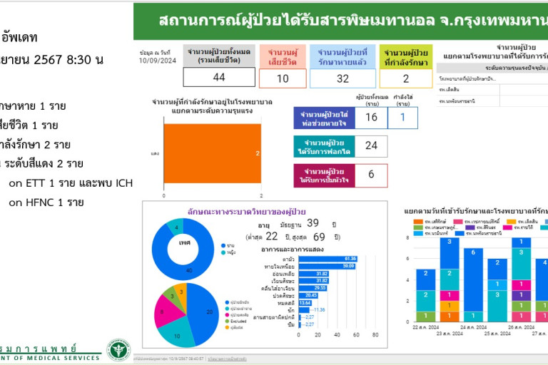 ความคืบหน้ากรณีสถานการณ์ที่มีผู้ป่วยหลายรายเข้าโรงพยาบาลพร้อมกันในเขตมีนบุรี, หนองจอกและคลองสามวา เนื่องจากได้รับสารพิษเมทานอลจากการดื่มเหล้าเถื่อนนั้น