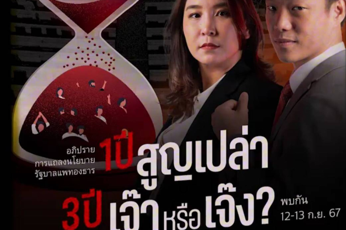 วันที่ 11 ก.ย. 2567 พรรคประชาชนเผยแพร่คลิปวิดิโอที่นายพริษฐ์ วัชรสินธุ สส.บัญชีรายชื่อพรรคประชาชน เปิดเผยถึงการอภิปรายแถลงนโยบายรัฐบาลใหม่ โดยนายกรัฐมนตรี นางสาวแพทองธาร ชินวัตร ระบุว่า "พรรคประชาชนในฐานะพรรคแกนนำฝ่ายค้าน ครั้งนี้จะอภิปรายในธีม '1 ปีที่สูญเปล่า 3 ปี เจ๊า หรือ เจ๊ง' โดยจะใช้เวทีนี้ในการตรวจการบ้านรัฐบาลนายเศรษฐา ทวีสิน ที่ทำงานมา 1 ปีเต็ม ว่าสามารถผลักดันนโยบายตามที่ได้สัญญาไว้กับรัฐสภา เมื่อ 1 ปีที่แล้วได้จริงหรือไม่ และจะใช้โอกาสนี้ในการพยายามซักถาม และเสนอแนะนโยบายที่เราเห็นว่าสำคัญในการแก้ไขปัญหาให้กับพี่น้องประชาชน รวมถึงเปรียบเทียบความแตกต่างหรือความเหมือนระหว่างนโยบายรัฐบาลนายเศรษฐา กับนโยบายรัฐบาลนางสาวแพทองธาร ทั้งเรื่องดิจิทัลวอลเล็ต ซอฟต์พาวเวอร์ แก้รัฐธรรมนูญ ปัญหาที่ดินทำกิน การศึกษา ครบทุกประเด็นอย่างแน่นอน"