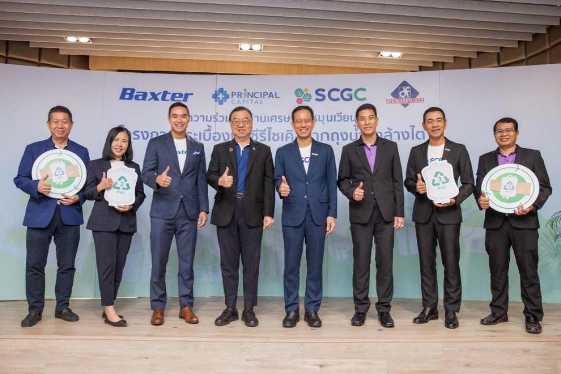 PRINC ผู้ดำเนินธุรกิจบริหารจัดการโรงพยาบาลเอกชนและธุรกิจสุขภาพในเครือพริ้นซิเพิล เฮลท์แคร์ และ เอสซีจี เคมิคอลส์ (SCGC) ผู้นำธุรกิจพอลิเมอร์ครบวงจรเพื่อความยั่งยืน พร้อมด้วย แบ็กซ์เตอร์ เฮลธ์แคร์ (Baxter Healthcare) บริษัทด้านยาและเวชภัณฑ์ระดับโลกที่มุ่งให้ความสำคัญกับสุขภาพไตของคนไทย และ ไดโนเฟล็กซ์ (Dynoflex) ผู้ผลิต จัดจำหน่าย และบริการติดตั้งวัสดุตกแต่งพื้นไวนิลทั้งในและต่างประเทศ ลงนามบันทึกความร่วมมือด้านเศรษฐกิจหมุนเวียน โครงการกระเบื้องพีวีซีรีไซเคิลจากถุงน้ำยาล้างไต (Circular Economy Collaboration: Dialysis Solution Bags to Recycled PVC Tiles) นับเป็นครั้งแรกในประเทศไทยที่นำถุงน้ำยาล้างไตใช้แล้วกลับเข้าสู่กระบวนการรีไซเคิลอย่างถูกวิธี เพื่อเพิ่มมูลค่าเป็นกระเบื้องพีวีซีรีไซเคิลคุณภาพสูง นำร่องติดตั้งที่หอพักผู้ป่วยโรงพยาบาลพริ้นซ์ สุวรรณภูมิ และจะขยายไปยังโรงพยาบาลในเครืออีก 3 จังหวัด สะท้อนการใช้ทรัพยากรให้เกิดประโยชน์สูงสุดตามหลักการเศรษฐกิจหมุนเวียน และพร้อมขับเคลื่อนประเทศไทยสู่สังคมคาร์บอนต่ำอย่างเป็นรูปธรรม