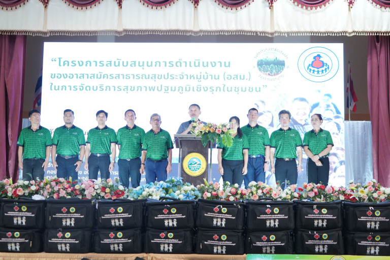 โดยได้ดำเนินการส่งมอบกระเป๋าเครื่องมือและอุปกรณ์คัดกรองและตรวจสุขภาพเบื้องต้น จำนวน 2,450 ใบ ให้แก่โรงพยาบาลส่งเสริมสุขภาพตำบลในสังกัด เพื่อพัฒนาศักยภาพอาสาสมัครสาธารณสุขประจำหมู่บ้าน ให้สามารถเป็นหมอคนที่ 1 ดูแลสุขภาพประชาชนในพื้นที่รับผิดชอบของตนเองได้ ด้วยเครื่องมือและอุปกรณ์ทางการแพทย์เบื้องต้นที่มีมาตรฐาน สามารถเสริมศักยภาพในการบริการด้านสุขภาพให้แก่ประชาชนในการเข้าถึงการบริการคัดกรองภาวะสุขภาพและตรวจสุขภาพเบื้องต้นได้อย่างทั่วถึงและครอบคลุมมากยิ่งขึ้น