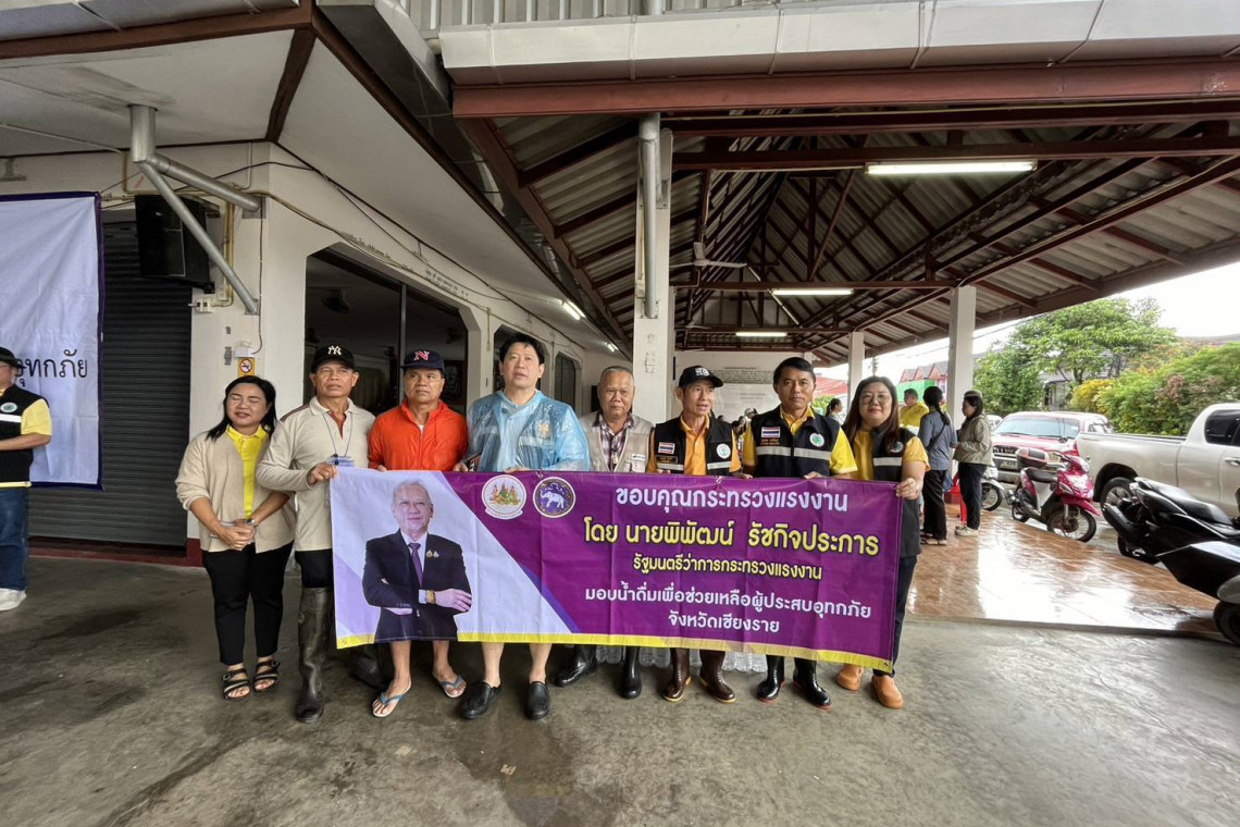 ด้าน นายไพโรจน์ โชติกเสถียร ปลัดกระทรวงแรงงาน กล่าวเพิ่มเติมว่า ท่านพิพัฒน์ รัชกิจประการ รัฐมนตรีว่าการกระทรวงแรงงาน ได้มีความห่วงใยต่อสถานการณ์ดังกล่าว ผมจึงได้สั่งการให้แรงงานจังหวัดพร้อมทุกหน่วยงานในสังกัดกระทรวงแรงงานระดมความช่วยเหลือในทันที ทั้งสนับสนุนกำลังเจ้าหน้าที่ระดมความช่วยเหลือตามภารกิจ เพื่อช่วยประชาชนไปยังสถานที่ที่ปลอดภัยร่วมกับทางจังหวัด เปิดพื้นที่ของสถาบันพัฒนาฝีมือแรงงาน เพื่อใช้เป็นศูนย์พักพิงชั่วคราวแก่ผู้ประสบอุทกภัยก่อน พร้อมทั้งให้จัดเตรียมเครื่องอุปโภคบริโภคถุงยังชีพเพื่อนำไปแจกจ่ายผู้ประสบภัย และนำภารกิจกระทรวงแรงงานไปให้บริการประชาชนเพื่อฟื้นฟูในพื้นที่ภายหลังน้ำลด ขณะเดียวกัน ยังได้เปิดศูนย์ช่วยเหลือผู้ประสบอุทกภัย เพื่อขอรับความช่วยเหลือผ่านสายด่วนกระทรวงแรงงาน ซึ่งล่าสุดผมได้รับรายงานจากแรงงานจังหวัดเชียงรายว่า ได้นำน้ำดื่มที่ท่านรัฐมนตรีว่าการกระทรวงแรงงานมอบให้นำไปแจกจ่ายให้แก่ผู้ประสบภัยในพื้นที่แล้ว รวมทั้งได้วางแผนกับหน่วยงานในสังกัดกำหนดให้ความช่วยเหลือฟื้นฟูต่อไป