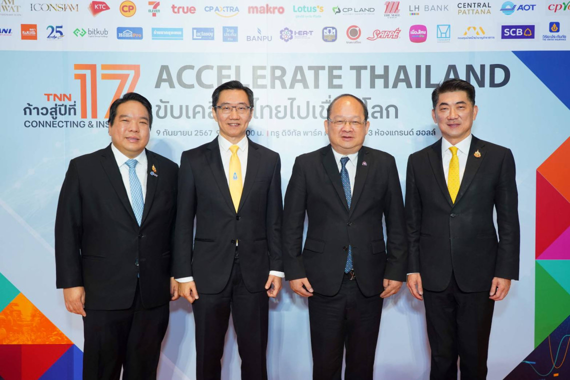 เมื่อวันที่ 12 ก.ย.67 ในโอกาสฉลองก้าวสู่ปีที่ 17 สถานีข่าวทีเอ็นเอ็น จัดงานสัมมนา “Accelerate Thailand ขับเคลื่อนไทยไปเชื่อมโลก” เดินหน้าผลักดัน และส่งเสริมความรู้ด้านเศรษฐกิจการเงินการลงทุนอย่างต่อเนื่อง สะท้อนจุดยืนสถานีข่าวคุณภาพอันดับหนึ่งที่ “ทันโลก ทันเศรษฐกิจ ทันทุกความจริง” เชิญผู้นำจากองค์กรระดับประเทศ และหน่วยงานสำคัญของไทย ร่วมนำเสนอวิสัยทัศน์ และยุทธศาสตร์ เพื่อยกระดับขีดความสามารถในการแข่งขันของประเทศไทยในเวทีโลก โดยได้รับเกียรติจาก นายองอาจ ประภากมล หัวหน้าสายงานทรูวิชั่นส์ และมีเดีย บมจ.ทรู คอร์ปอเรชั่น และกรรมการผู้จัดการ บริษัท ไทย นิวส์ เน็ตเวิร์ค (ทีเอ็นเอ็น ช่อง 16) จำกัด เป็นประธานกล่าวเปิดงาน