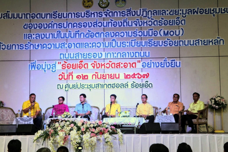 วันที่ 12 ก.ย.67 นายชัยวัฒน์ ชัยเวชพิสิฐ รองผู้ว่าราชการจังหวัดร้อยเอ็ด เป็นประธานเปิดการสัมมนาถอดบทเรียนการบริหารจัดการสิ่งปฏิกูลและมูลฝอยชุมชน ขององค์กรปกครองส่วนท้องถิ่น โดยมี นายอินศร อุ่นใจ ท้องถิ่นจังหวัดร้อยเอ็ด พร้อมด้วย หัวหน้าส่วนราชการ ผู้นำท้องที่ ผู้นำท้องถิ่น และภาคีเครือข่าย เข้าร่วม ณ หอประชุมสาเกตฮอลล์ อำเภอเมืองร้อยเอ็ด จังหวัดร้อยเอ็ด โดยมีแผนปฏิบัติการการบริหารจัดการสิ่งปฏิกูลและมูลฝอย จำนวน 3 ระยะ ได้แก่ ต้นทาง กลางทาง และปลายทาง เพื่อกำจัดขยะมูลฝอยอย่างถูกต้อง ตามหลักวิชาการ โดยใช้หลักการ 3 ช. ใช้น้อย ใช้ซ้ำ และนำกลับมาใช้ใหม่ ให้บังเกิดผลสัมฤทธิ์อย่างเป็นรูปธรรม