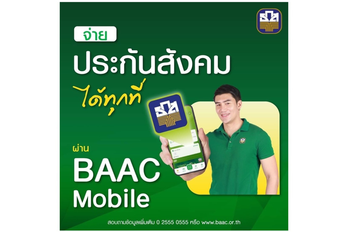 ธ.ก.ส. เปิดบริการชำระเงินกองทุนประกันสังคมมาตรา 39 ผ่านแอปพลิเคชัน BAAC Mobile