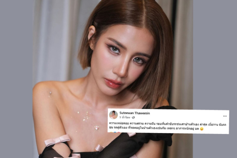 วันนี้ 12 ก.ย. ใบเตย ได้โพสต์ข้อความผ่านเฟซบุ๊กส่วนตัว ระบุข้อความว่า "ความเหม่อลอย ความสรวน ความมึน รอบที่แล้วขับรถชนเสาบ้านตัวเอง ล่าสุด เมื่อวาน ขับรถชน รถตู้ตัวเอง ที่จอดอยู่ในบ้านตัวเองเช่นกัน เหอๆๆ อาการหนักอยู่ บต"
