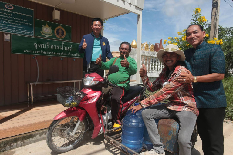 กรมทรัพยากรน้ำบาดาล ลงพื้นที่โครงการพัฒนาน้ำบาดาลเพื่อความมั่นคงระฃดับชุมชนบ้านหนองบัวหิ่ง หมู่ที่ 4 ต.สระลงเรือ อ.ห้วยกระเจา จ.กาญจนบุรี ติดตามความสำเร็จในการพลิกฟื้นพื้นที่อีสานแห่งภาคกลางให้มีน้ำกินน้ำใช้ ประชาชนได้รับประโยชน์ 3,000 ครัวเรือนหรือ 10,000 คน ด้านนายกเทศมนตรีตำบลสระลงเรือ เผยชาวบ้านชื่นชมกรมทรัพยากรน้ำบาดาลเปลี่ยนชีวิตจากเดิมต้องซื้อน้ำกินน้ำใช้ปีละกว่า 5 แสนบาท