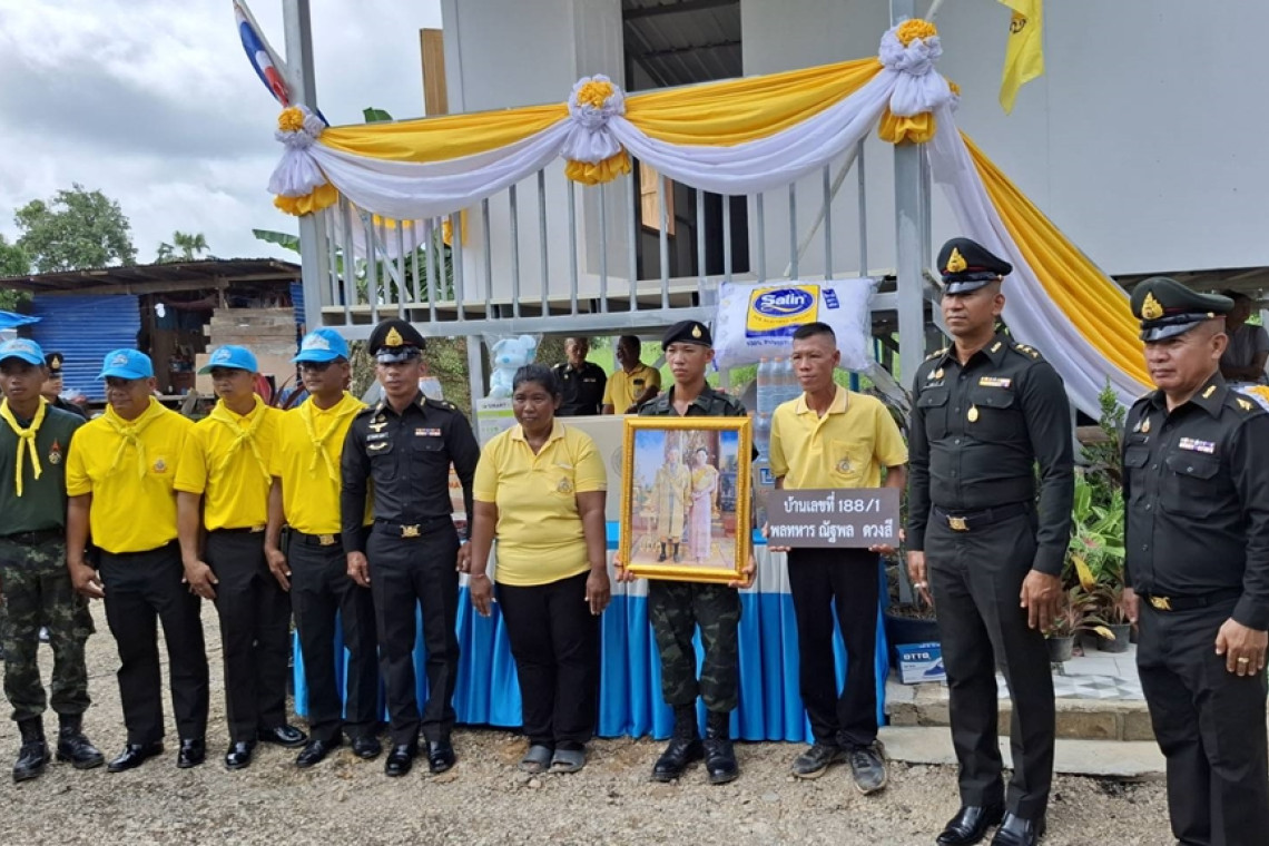 วันที่ 13 ก.ย.67 ณ บ้านเลขที่ 188 / 1 หมู่ที่2 ตำบลย่านยาว อำเภ สวรรคโลก จังหวัดสุโขทัย พลตรี นพดล ยงพาณิชย์ ผบ.บชร.3 เป็นประธานพิธีถวายเครื่องราชสักการะเปืดกรวยกระทงดอกไม้ ถวายความเคารพ พระบรมฉายาลักษณ์ พระบาทสมเด็จพระเจ้าอยู่หัวพร้อม จัดกิจกรรมเฉลิมพระเกียรติ พิธีส่งมอบบ้านพักอาศัยให้กับทหารกองประจำการ เพื่อน้อมเกล้า ถวายเป็นพระราชกุศลแด่พระบาทสมเด็จพระเจ้าอยู่หัวฯ