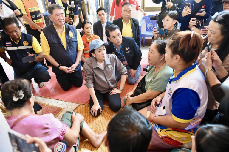 เมื่อเวลา 12.00 น. วันที่ 13 ก.ย. 67 ที่วัดพรหมวิหาร อำเภอแม่สาย จ.เชียงราย ซึ่งเปิดเป็นศูนย์พักพิงสำหรับผู้ประสบภัย เพื่อเยี่ยมและให้กำลังใจผู้ประสบภัย นางสาวแพทองธาร ชินวัตร นายกรัฐมนตรี พร้อมคณะได้มาให้กำลังใจผู้ประสบภัย โดยนายกฯ ได้เข้าไปนั่งพูดคุยและสวมกอดชาวบ้าน ทำให้ชาวบ้านเข้ามาสวมก่อนและร่ำให้ โดยชาวบ้านระบุว่า ลำบากมาก แต่ก็ยังมีบางคนที่ไม่ยอมออกจากบ้าน โดยเฉพาะคนแก่ จึงอยากให้รัฐบาลประกาศ หากมีพายุเกิดขึ้น ขอให้ชาวบ้านที่ไม่ยอมออกจากบ้านให้ออกจากพื้นที่ เพื่อรักษาชีวิตไว้ แต่ก็มีข่าวเมื่อน้ำลดก็มีขโมยเกิดขึ้น ชาวบ้านก็ไม่อยากจะทิ้งบ้านกัน