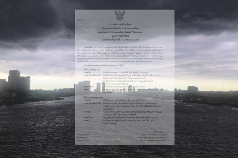 "กรมอุตุฯ" ออกประกาศเตือนฉบับ 4 รับมือฝนถล่มทั่วไทย 13-17กันยาฯ