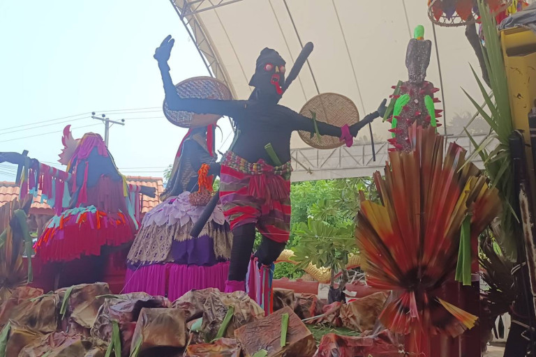 ซึ่งพิธีกรรมเหล่านี้สะท้อนให้เห็นการผสมผสานกลมกลืน ระหว่างความเชื่อเดิมในท้องถิ่นกับความเชื่อกระแสหลักที่เข้ามาในภายหลังซึ่งมีการเลือกรับและปรับเข้าหากัน เป็นความเชื่อทับซ้อนในพื้นที่จนเป็นอัตลักษณ์เฉพาะของแต่ละท้องถิ่นที่จ.ชัยภูมิ เองก็เช่นกัน ในช่วงบุญข้าวสาก หรือ บุญเดือน 10 ประเพณีของชาวอีสาน ลูกหลานจะไปทำบุญเพื่ออุทิศส่วนบุญส่วนกุศลให้กับบรรพบุรุษที่ล่วงลับไปแล้ว ส่วนผีที่ไม่มีญาติ ลูกหลานไม่ได้ไปทำบุญให้ จะไปขอรับส่วนบุญหรืออาหารจากผีตนอื่น แต่ด้วยความอับอาย เลยเอาสุ่มไก่มาคลุมหัวคลุมตัว จึงเป็นที่มาของการละเล่น “ผีสุ่ม“ เพื่อเตือนใจ ให้ลูกหลาน เมื่อถึงบุญข้าวสาก 15ค่ำเดือน 10 ให้กลับบ้านมาทำบุญใหญ่ ระลึกถึงบรรพบุรุษที่ล่วงลับไปแล้ว