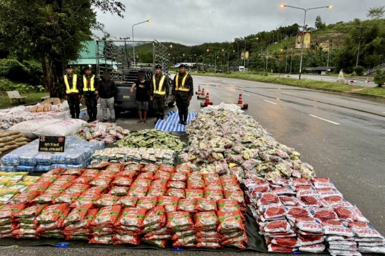 จากการตรวจสอบ บนหลังรถกระบะบรรทุก คันดังกล่าว พบกระสอบบรรจุสินค้าอุปโภคและบริโภค ที่ไม่ได้ผ่านพิธีการศุลกากร ประทับตัวอักษรภาษาเมียนมา จำนวน 35กระสอบ รวมสินค้า 10 รายการ อาทิ ชาเย็นสำเร็จรูป ชาเขียว ชาหอม พริกป่นพม่า ถั่วทรงเครื่องพม่า เมี่ยงพม่า ยำถั่วพม่า ถั่วพม่า ลูกชิ้นแห้ง และแป้งทอดกรอบ บนรถกระบะคันดังกล่าว