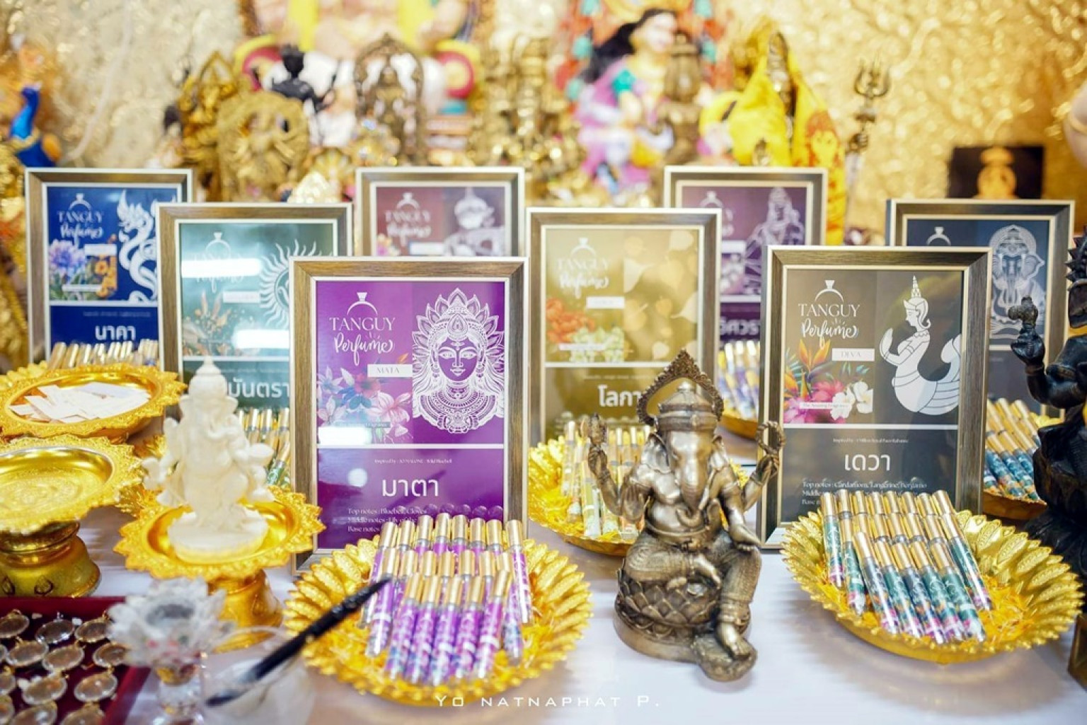 บรรยากาศภายในงานเต็มเปี่ยมไปด้วยพลัง ความเข้มขลังจากพิธีอันศักดิ์สิทธิ์ที่ อาจารย์ที จัดเตรียมไว้ให้กับเหล่าลูกศิษย์ และผู้เข้าร่วมงาน รวมทั้งพิธีปลุกเสกในแบบฉบับฮินดูกับ “น้ำหอมสายมู” Tanguy Perfume น้ำหอมองค์เทพ สำหรับฉีดพรมร่างกายที่มีถึง 8 กลิ่นให้เลือก
