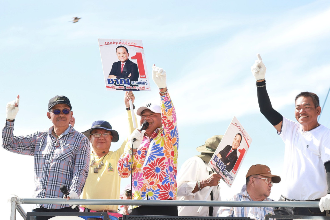 ลุงชาญฯฝ่าสายฝนหาเสียง ลั่นไม่ถอยแม้โดนใส่ร้าย ชาวบ้านแห่ให้กำลังใจคึกคัก