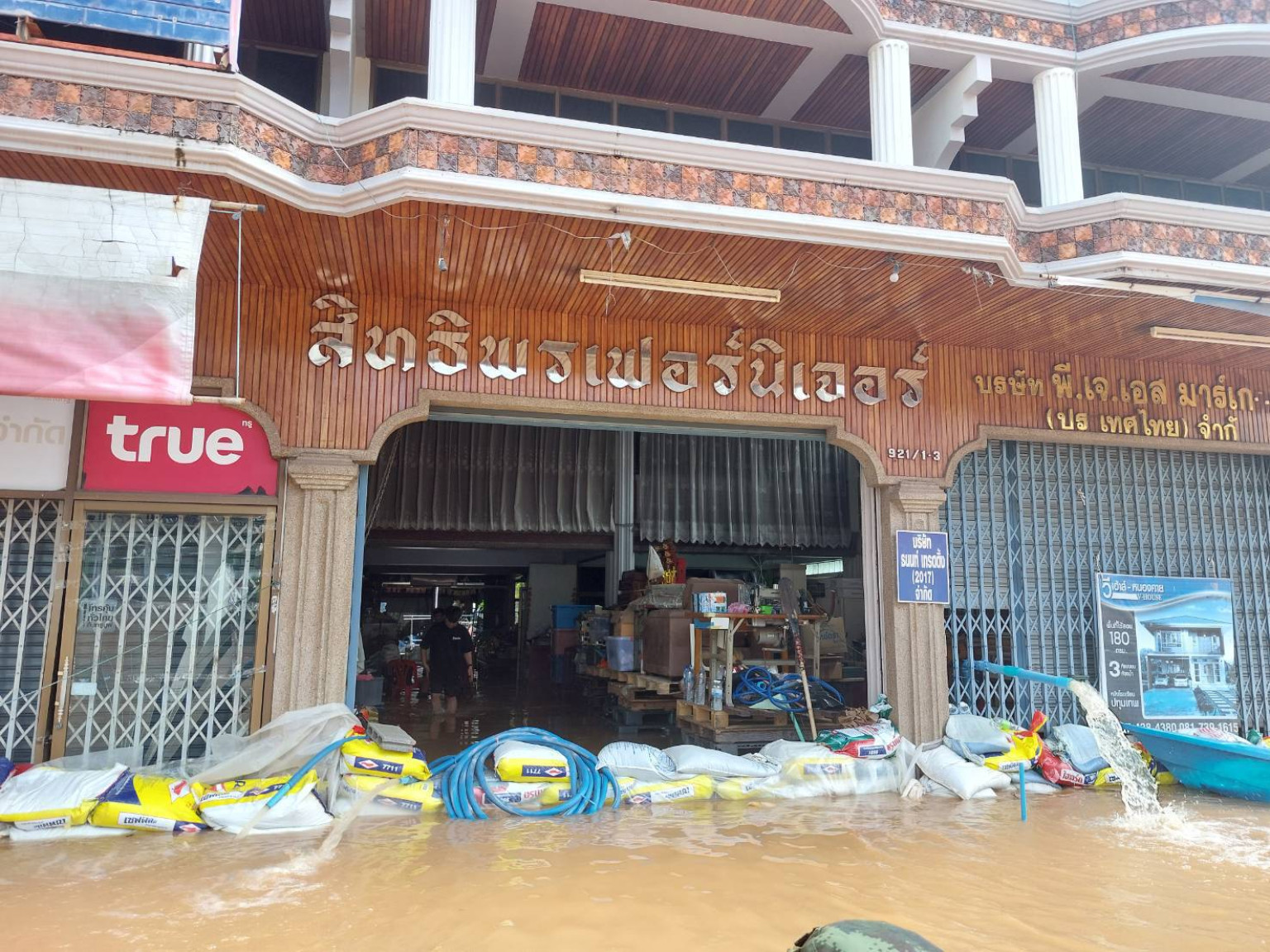 วันที่ 16 ก.ย.67 ผู้สื่อข่าวได้ลงพื้นที่ติดตามสถานการณ์น้ำท่วมในเขตเทศบาลเมืองหนองคาย น้ำโขงได้ลดระดับลงอย่างต่อเนื่อง เวลาประมาณ 14.45 ระดับน้ำอยู่ที่ 13.40 ม.ลดลงจากเมื่อวานตอนเช้า 41 ซม.แต่ยังคงสูงกว่าตลิ่งประมาณ 1.20 ม.ยังคงต้องเฝ้าระวังตลอด 24 ชั่วโมง ทราบว่า เมื่อคืนที่ผ่านมามีชายขับรถบรรทุก ลักษณะคล้ายคนเมาขับรถบรรทุก 6 ล้อฝ่าแนวกันซอยหน้า บขส.หนองคาย เลี้ยวซ้ายฝ่ากระแสน้ำไปตามถนนประจักษ์ที่มุ่งหน้าไปทางเทศบาลเมืองหนองคายใช้ความเร็วประมาณ 40-50 กิโลเมตรต่อชั่วโมงทำให้น้ำที่ท่วมถนนเกิดคลื่นขนาดใหญ่ กระทบกับกระจกบ้าน ห้างร้านต่างๆที่อยู่บริเวณถนนประจักษ์ทั้ง 2 ข้างทางแตกได้รับความเสียกว่า 20 หลังคาเรือน