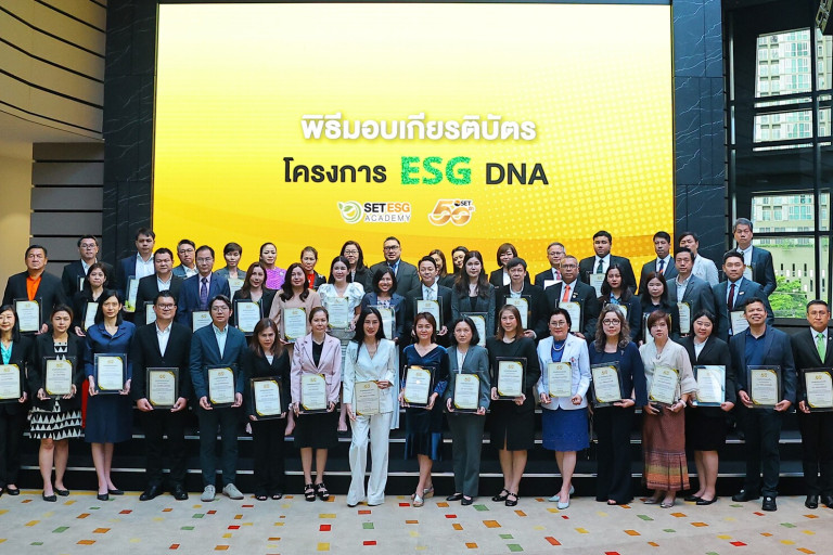 โครงการ "ESG DNA" ริเริ่มโดยตลาดหลักทรัพย์ฯ ในปี 2566 เพื่อเสริมสร้างความเข้าใจในแนวคิดด้านสิ่งแวดล้อม สังคม และบรรษัทภิบาล (ESG) ผ่านระบบ E-Learning ที่ครอบคลุมเนื้อหากว่า 20 หลักสูตร โดยเกียรติบัตรนี้มอบให้แก่องค์กรที่มีพนักงานผ่านการอบรมหลักสูตรพื้นฐานด้านความยั่งยืนเกินกว่า 70% ซึ่งสะท้อนถึงความมุ่งมั่นในการดำเนินธุรกิจอย่างรับผิดชอบและการขับเคลื่อนสู่เป้าหมายการพัฒนาที่ยั่งยืน (SDGs)