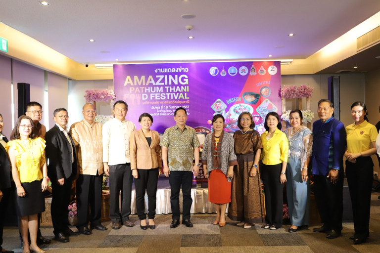 วันนี้ (18 ก.ย.67) เวลา 14.00 น. นายภาสกร บุญญลักษม์ ผู้ว่าราชการจังหวัดปทุมธานี พร้อมด้วย นางลัษมา ธารีเกษ วัฒนธรรมจังหวัดปทุมธานี นางสาวแสงจันทร์ แก้วประทุมรัสมี ท่องเที่ยวและกีฬาจังหวัดปทุมธานี รศ.ดร.สาคร ชลสาคร คณบดีคณะเทคโนโลยีคหกรรมศาสตร์ มหาวิทยาลัยเทคโนโลยีราชมงคลธัญบุรี ร่วมกันแถลงข่าวส่งเสริมการท่องเที่ยวเชิงอาหาร (Gastronomy Tourism) จังหวัดปทุมธานี “เทศกาลมหัศจรรย์อาหารจังหวัดปทุมธานี” ณ โรงแรมทินิดี โฮเต็ล บางกอก กอล์ฟคลับ อำเภอเมืองปทุมธานี จังหวัดปทุมธานี
