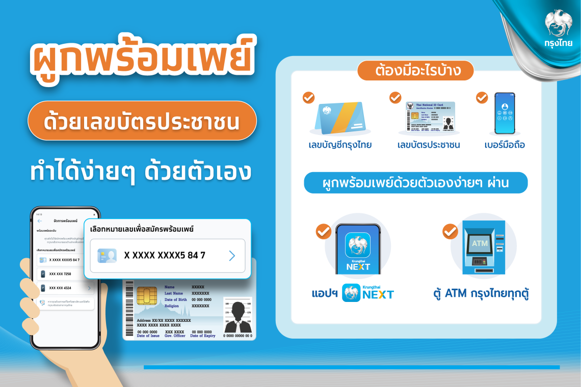 “กรุงไทย” แนะผูกพร้อมเพย์ด้วยตัวเองง่ายๆ ผ่านแอปฯ Krungthai NEXT และตู้ ATM กรุงไทยทั่วประเทศ