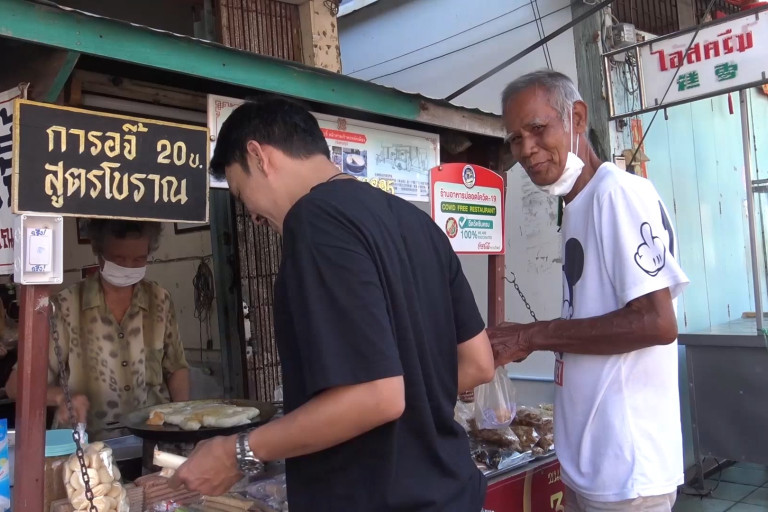 "ขนมการอจี้สูตรโบราณแท้"คุณทิพวรรณ เจ้าของร้านการอจี้ เล่าว่าตนได้สืบทอดกิจการต่อจากรุ่นคุณพ่อคุณแม่ ซึ่งเป็นชาวจีนโพ้นทะเล ในอดีต คุณทิพวรรณได้ขายเต้าฮวยสูตรโบราณที่ได้รับจากคุณแม่ ก่อนที่ในปัจจุบัน คุณทิพวรรณ ได้ขายขนมการอจี้แทน คุณทิพวรรณกล่าวว่า ขนมการอจี้เป็นขนมโบราณของชาวจีน และคุณทิพวรรณได้รับสูตรการทำขนมการอจี้ จากคุณแม่เช่นกัน ขนมการอจี้ของคุณทิพวรรณจึงมีความอร่อยแบบฉบับจีนแท้ เนื้อแป้ง กรอบนอกนุ่มใน เมื่อรับประทานพร้อมน้ำตาล และงาที่โรยหน้าสามารถเพิ่มรสชาติความอร่อยได้มากทีเดียว”