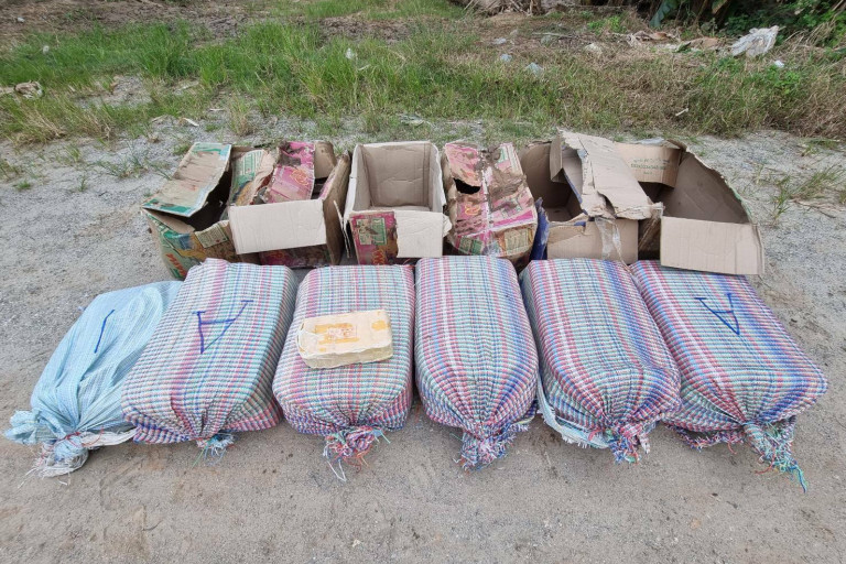 เมื่อเวลา 5:20 น วันที่ 21 ก.ย. นี้ เจ้าหน้าที่ทหารจาก ร้อย.ม.3 ฉก.ทัพเจ้าตาก กองกำลังผาเมือง ได้จัดกำลังออกทำการลาดตระเวนและเฝ้าตรวจ เพื่อป้องกันและสกัดกั้นการกระทำผิดตาม พ.ร.บ.ยาเสพติด บริเวณ บ.ป่าซางงาม ม.6 ต.เกาะช้าง อ.แม่สาย เชียงราย ค่อมาได้ตรวจพบบุคคลต้องสงสัย จำนวน 2 คน ยืนอยู่บริเวณกล่องต้องสงสัยที่วางซุกซ่อนบริเวณข้างทางบนถนนภายในหมู่บ้าน เจ้าหน้าที่จึงได้แสดงตัวเพื่อขอทำการตรวจค้น แต่กลุ่มบุคคลดังกล่าวเมื่อเห็นเจ้าหน้าที่กลับตื่นตกใจและได้ทิ้งกล่องทั้งหมดเอาไว้ก่อนจะอาศัยความมืดวิ่งหลบหนีข้ามลำน้ำรวกกลับไปยังเขต ประเทศเพื่อนบ้านไปได้