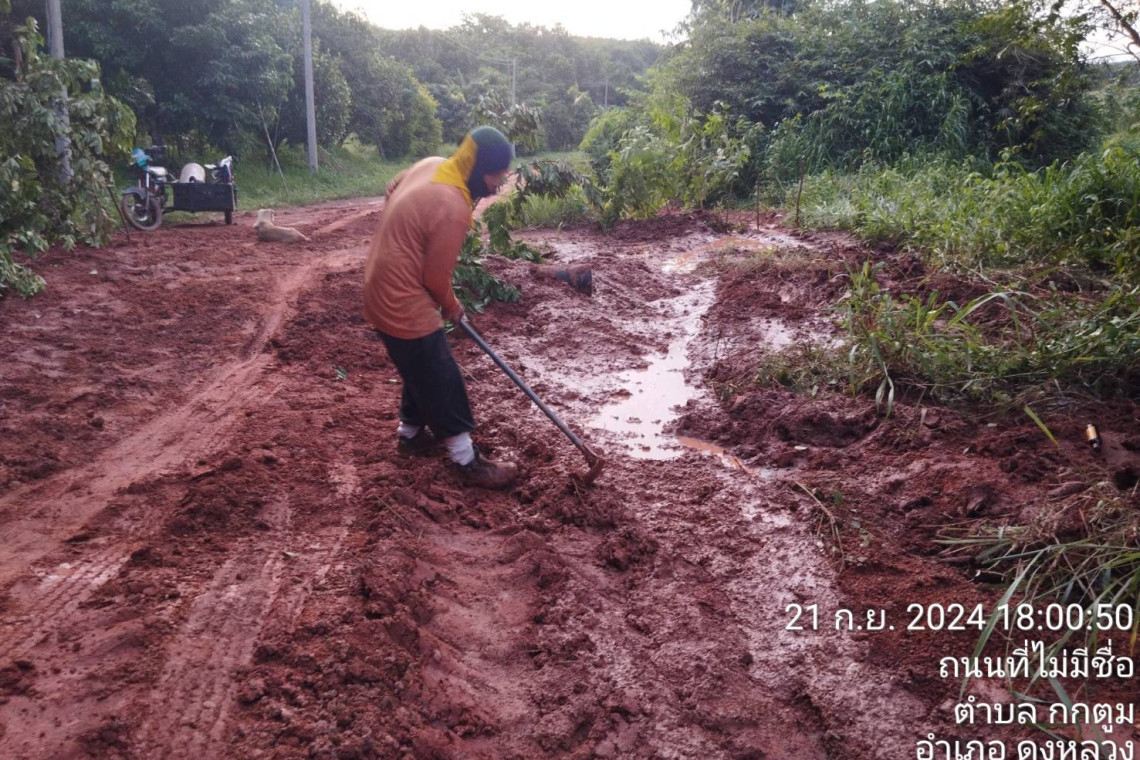 เมื่อวันที่ 21 กันยายน 2567 เวลาประมาณ 10.00 น ชาวบ้านในพื้นที่บ้านปากช่อง หมู่ที่ 9 ต.กกตูม อ.ดงหลวง จ.มุกดาหาร ได้รวมตัวกันนำรถไถ และจอบ เสียม มาทำการวางท่อระบายน้ำและปรับปรุงซ่อมแซมถนนเส้นทางหลังโรงเรียนกกตูมประชาสรรค์ บ้านปากช่องหมู่ที่ 9 ต.กกตูม อ.ดงหลวง จังหวัดมุกดาหาร ซึ่งเป็นถนนที่ชาวบ้านใช้ประโยชน์ร่วมกันในการขนย้ายผลผลิตทางการเกษตรแต่ช่วงฤดูฝนถนนชำรุดเป็นหลุมเป็นบ่อ หลังจากมีฝนตกลงมาในพื้นที่หลายวันอย่างต่อเนื่องทำให้ถนนมีน้ำขังเป็นหลุมเป็นบ่อลึก เนื่องจากถนนช่วงดังกล่าวไม่มีท่อระบายน้ำ ชาวบ้านและเกษตรกรที่ต้องสัญจรและลำเลียงขนส่งสินค้าทางการเกษตรได้รับความเดือดร้อน สัญจรด้วยความยากลำบาก และเกิดอุบัติเหตุได้โดยง่าย ชาวบ้านจึงได้ร่วมแรงร่วมใจกันวางท่อระบายน้ำพร้อมช่วยกันซ่อมแซมถนนเส้นดังกล่าวระหว่างรอการเข้าดำเนินการช่วยเหลือทำการซ่อมแซมจากหน่วยงานของรัฐ ให้สามารถบรรเทาความเดือดร้อนเบื้องต้นในการสัญจรได้ปลอดภัยมากขึ้น