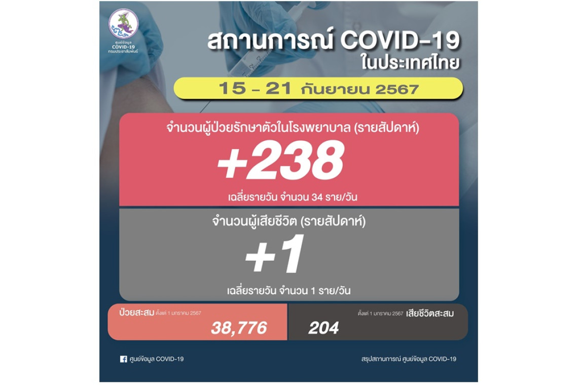 เมื่อวันที่ 23 ก.ยง67 เพจเฟซบุ๊กศูนย์ข้อมูล COVID-19 โพสต์ข้อความระบุว่า...