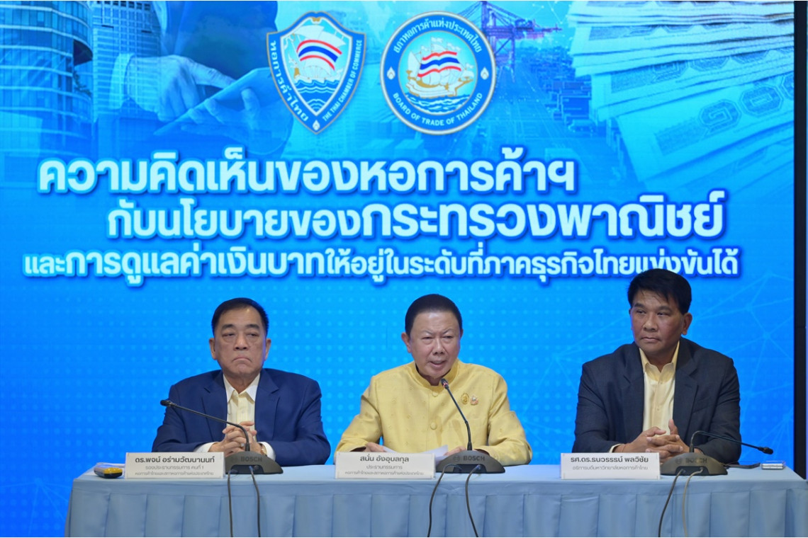หอการค้าไทยและสภาหอการค้าแห่งประเทศไทย เสนอรัฐบาลและหน่วยงานที่เกี่ยวข้องกำกับดูแลค่าเงินบาทให้อยู่ในระดับที่ภาคธุรกิจไทยสามารถแข่งขันได้ เพื่อขับเคลื่อนเศรษฐกิจไทยให้เติบโตเต็มศักยภาพ เผยบาทแข็งค่าเร็วแรง 10% มองจุดเหมาะสม 34 บาท