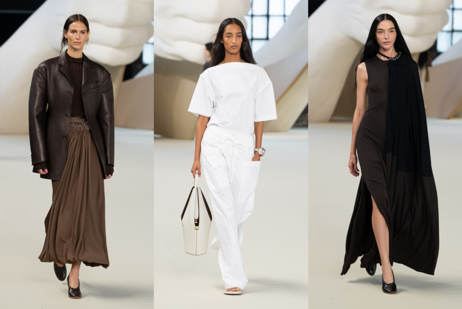 เทรนช์โค้ทรุ่นไอคอนิกในผ้าคอตตอนและหนัง ถูกนำเสนอพร้อมกับระดับความยาวที่หลากหลาย, เสื้อ Windbreaker จากผ้าคอตตอนเคลือบเรซินหรือหนังรุ่นน้ำหนักเบาพิเศษ รวมทั้งแจ็คเก็ตและเสื้อเชิ้ตในแบบ mélange crepe ทำให้เกิดชิ้นงานจากการตัดเย็บที่ลงตัว เช่น สูทที่จับคู่แจ็คเก็ตสั้นกับกางเกงทรงเพรียวในเฉดสีที่แตกต่างกัน โดยมีพาเลตต์สีเน้นโทนสีธรรมชาติที่ได้แรงบันดาลใจจากหิน ทราย ทองแดง และสีสันอันสดใสของภูมิทัศน์ในอิตาลี ได้แก่ สีเขียวของทุ่งหญ้า สีน้ำเงินของทะเล และสีแดงของพื้นดิน