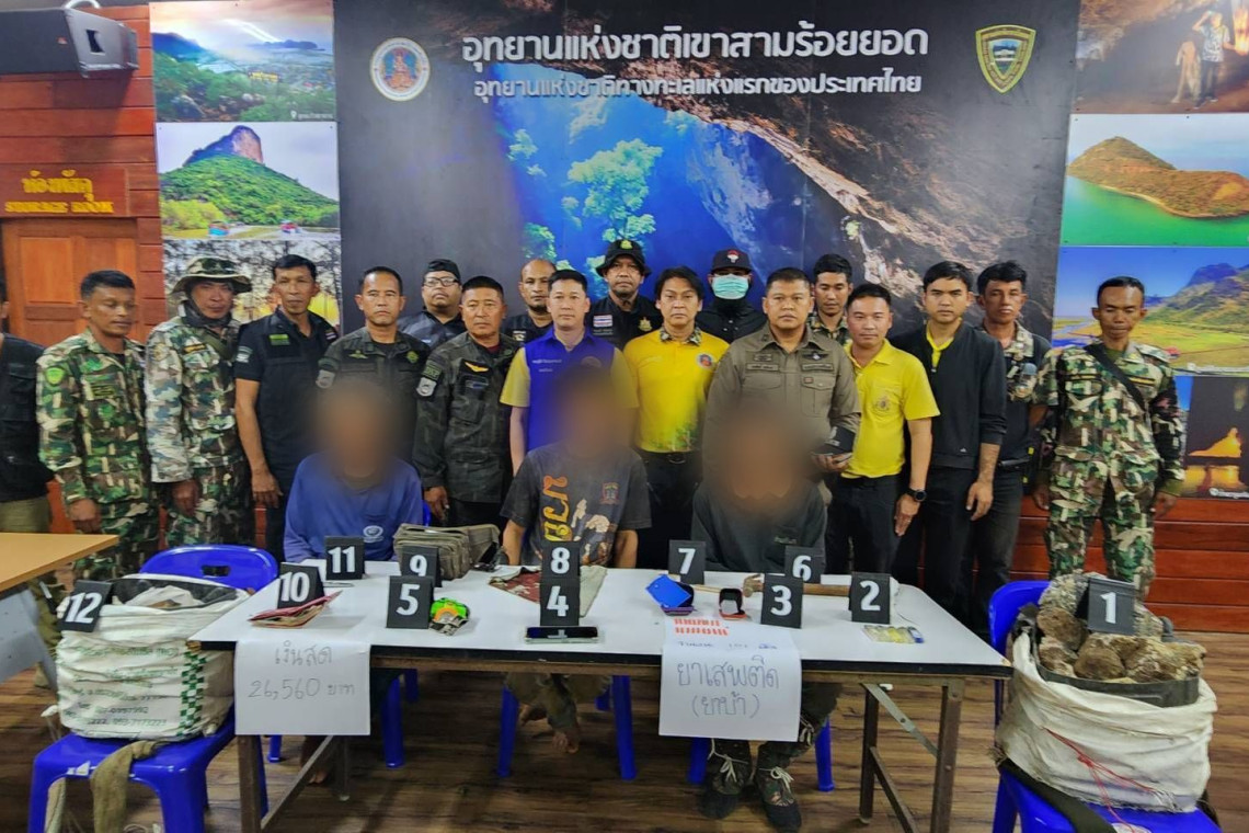 อช.สามร้อยยอด ดักจับชาวบ้านแอบขึ้นเขา ขนหินพระธาตุ พร้อมยาบ้า 101 เม็ด ได้ผู้ต้องหา 7 คน หลบหนีไปได้อีกหลายคน