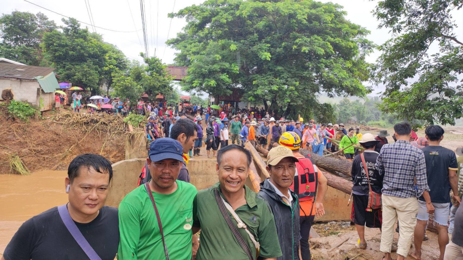 เชียงราย น้ำป่าถล่มสะพานบ้านแม่ปูนล่าง ชาวบ้านร่วมใจสร้างสะพานชั่วคราวส่งการช่วยเหลือ