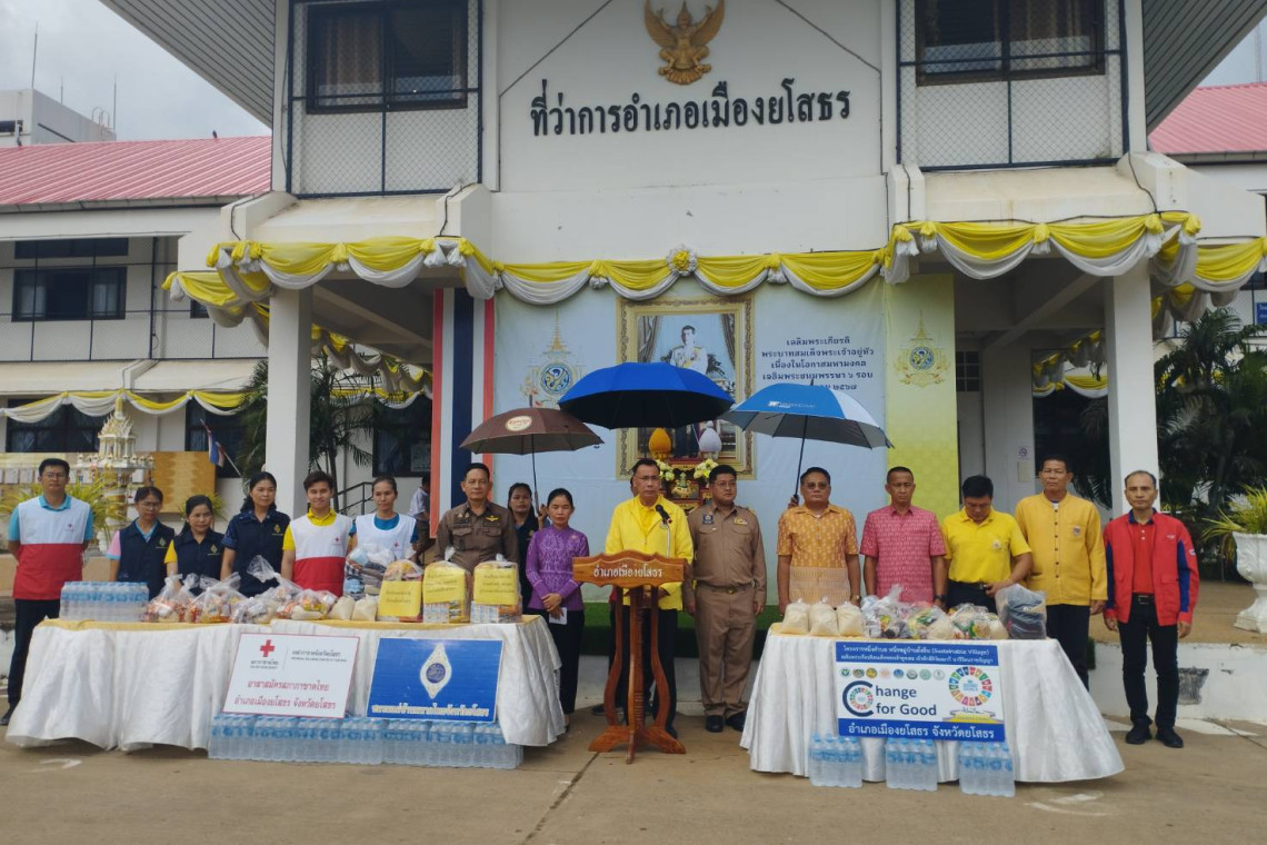 ผู้ว่าฯยโสธร ปล่อยขบวนรถบรรทุกสิ่งของช่วยเหลือประชาชนประสบอุทกภัย ที่จังหวัดเชียงราย